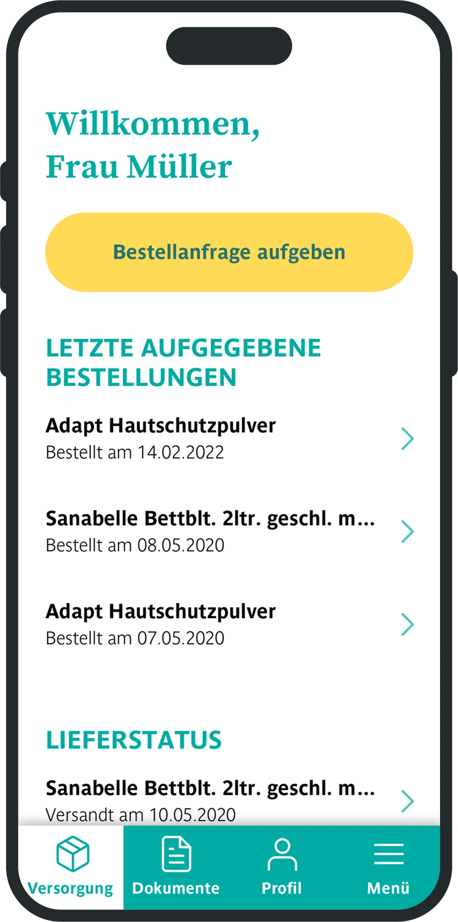 - Überblick über getätigte Bestellungen, Lieferstatus sowie eingereichten Rezepte